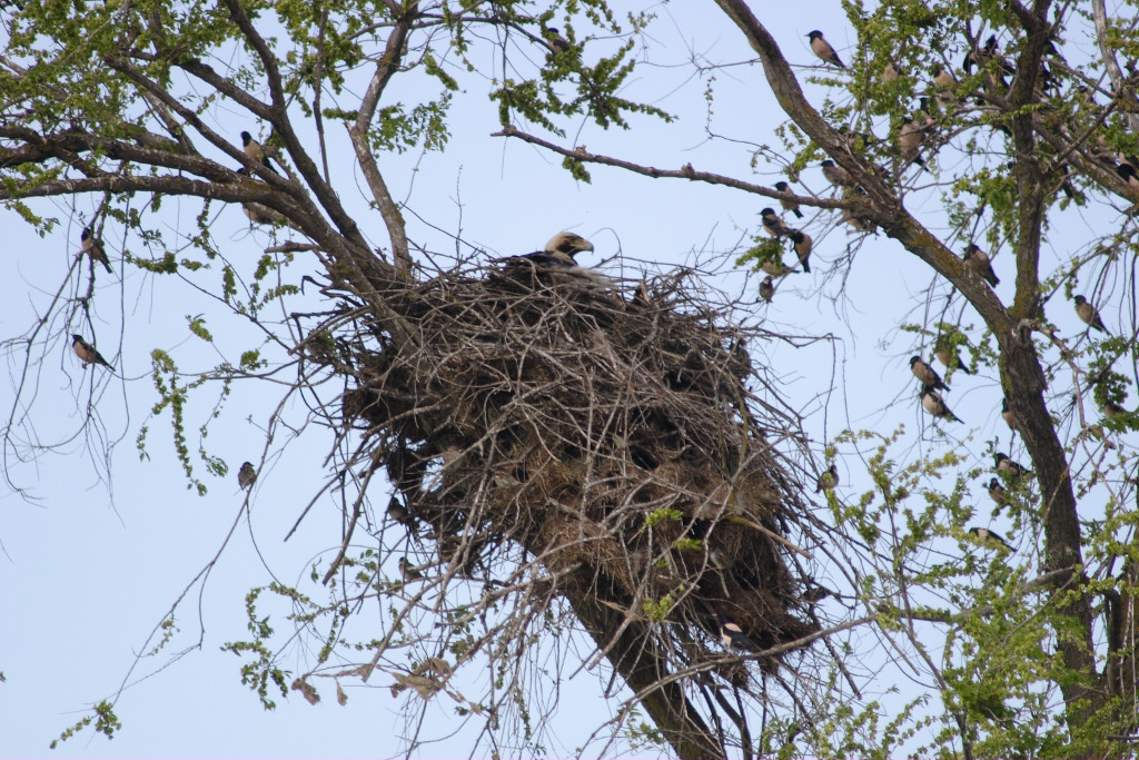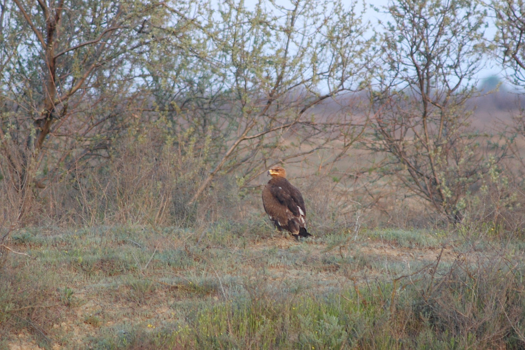 Особенно же впечатляющими оказались современные тенденции в популяциях орла-могильника. Так, на равнинах и в предгорьях Дагестана, где до этого общая численность орла оценивалась всего в 12-15 пар (Джамирзоев и др., 2000), нами было выявлено еще около 20 ранее неизвестных гнезд, в том числе 12 гнезд – на равнине, одно – на склонах самого крупного в Европе, фантастического бархана Сарыкум в заповеднике в предгорьях у Махачкалы, а остальные – в межгорных котловинах. Только за один день 5 мая в Дагестане было обнаружено 7 жилых гнезд карагуша. Два новых его гнезда найдены в полезащитных лесополосах на Ставрополье, старое гнездо отмечено на Кабардинской подгорной равнине, а 9 мая под куэстами Скалистого хребта в междуречье Чегема и Баксана всего на 30 км маршрута мы учли сразу 11 гнезд могильника, лишь 4 из которых были известны нам ранее (Белик, Тельпов, 2007). При этом еще 2 его гнездовых участка остались там не обследованы из-за дефицита времени.