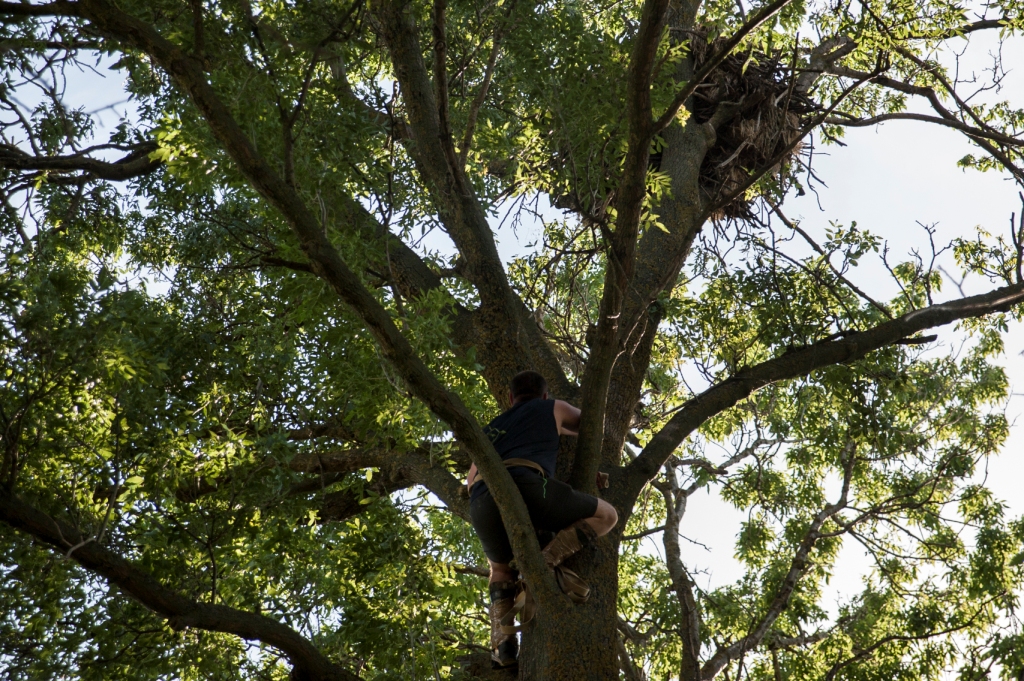 Перш за все було відвідано два гнізда балабанів, зайняті минулого року. Пара балабанів, у якої у 2017 році ми помітили передавачами двох пташенят, у 2018 році також гніздилась успішно. Гніздо крука, в якому вони розмножувалися минулого року, розпалося і балабани зайняли старе гніздо орлана-білохвоста неподалік. На момент відвідування нами гнізда, у ньому було не менше двох пташенят у другому пуховому вбранні, тому мічення передавачами не здійснювалось, зважаючи на малий вік птахів. Інше гніздо на опорі ЛЕП, де у балабанів минулого року були пташенята, виявилося зруйнованим. Наші пошуки соколів у цьому районі були безрезультатними.