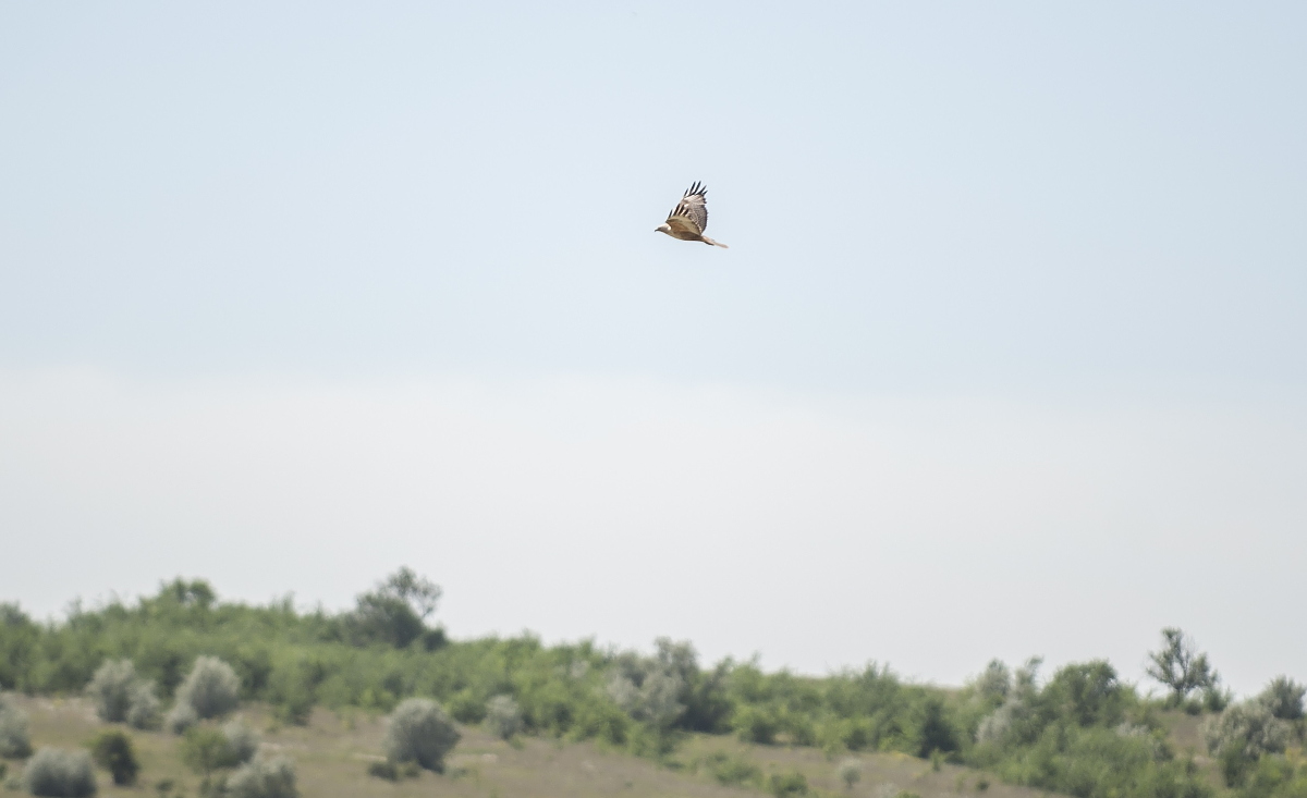 В одному місці нам вдалося виявити пару балабанів, яка декілька років тому гніздилася неподалік. Ми спостерігали за птахами ввечері та зранку – вони відпочивали на опорах ЛЕП та полювали. У цьому місці були наявні гнізда круків на опорі ЛЕП, проте вони не були зайняті балабанами. Швидше за все, пара цього року гніздилась неуспішно.