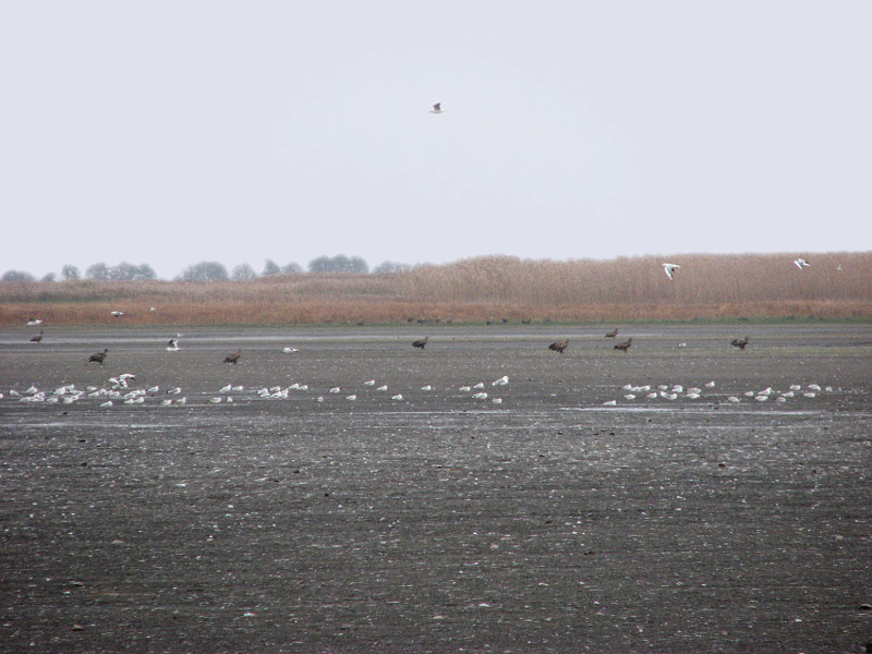 а кстати больших белоголовых чаек скоплений (серебристых, хохотуний, клуш) во время учетов орланов не было? У нас сотенные стаи мигрируют на юг по притокам Днепра, весной на север, среди них кстати есть клуши как минимум трех подвидов.
