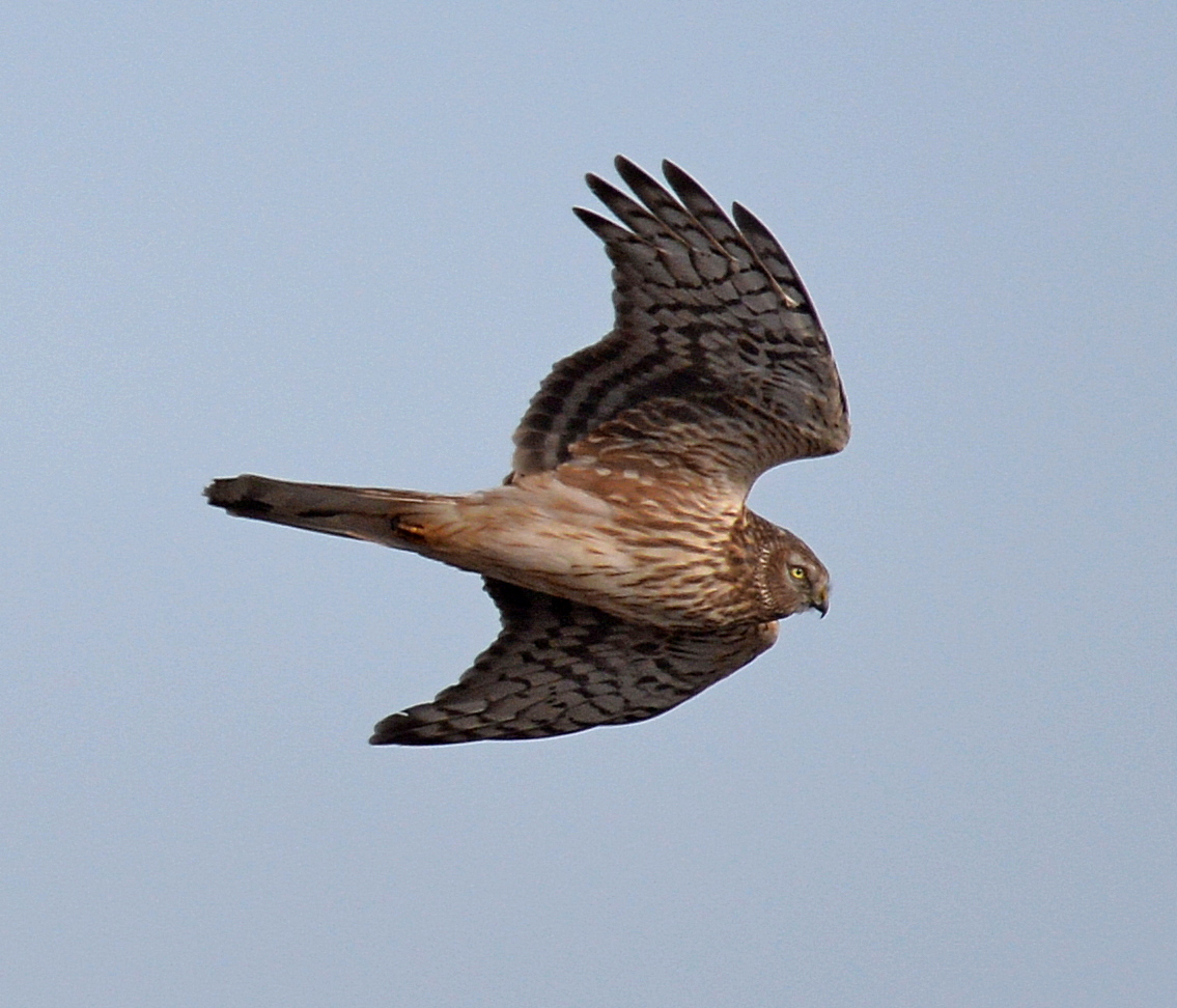 Подобное скопление полевых луней было выявлено нами в Акимовском районе Запорожской области зимой 2019-2020 гг. Для ночевки луни избрали тростниковые заросли в верховьях Утлюкского лимана. Впервые полевых и болотных луней на этом месте мы отметили в ноябре численность птиц составила 17 полевых и 3 болотных (Circus aeruginosus) луней. Наиболее полные наблюдения при участии двух учетчиков с разных точек удалось провести 13.01.2020 г. В предвечерних сумерках луни слетались с охотничьих территорий в верховье Утлюкского лимана в район моста, расположенного в 3 км от с. Давыдовка. В основном птицы подлетали с южной и северо-западной сторон. Первые особи, появившиеся у места ночевки, летали над тростником, затем группками или одиночками садились отдыхать на грунт. Подлет луней к месту ночевки продолжался до глубоких сумерек, одновременно можно было наблюдать до 55 птиц, беспорядочно летающих над тростником. В глубоких сумерках луни перелетали в тростник, где и ночевали. Всего 13.01.2020 г. было учтено 118 полевых и 5 болотных луней. Принимая во внимание недоучет, оценка численности ночевочного скопления полевого луня может составлять 125-130 особей. Это самое крупное известное скопление луней на зимовке в Украине. Учитывая, что полевой лунь занесен в Красную книгу Украины (2009), верховья Утлюкского лимана является местом, важным для сохранения вида.