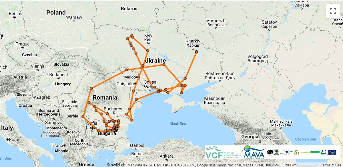 Гриф чорний, якому дали ім’я Sliven, народився у пари, що гніздилась у природних умовах в Іспанії у 2017 році. Його було забрано до реабілітаційного центру та згодом перевезено до Болгарії. Перед випуском його, разом з іншими грифами, тримали у вольєрі, встановленому у природних умовах. 23 травня 2019 року на птаха був надітий передавач та його було випущено на волю в районі гори Kotlenska Planina (східна частина Балканських гір, Болгарія). Протягом майже року гриф не здійснював далеких переміщень. 9 квітня 2020 почав мігрувати в північному напрямку до Румунії. Невдовзі опинився на території України та відвідав чимало областей в правобережній частині країни. Ненадовго затримався на Кінбурнському півострові, після чого повернувся до східної частини Румунії. Протягом місяця гриф здолав 6400 км.
