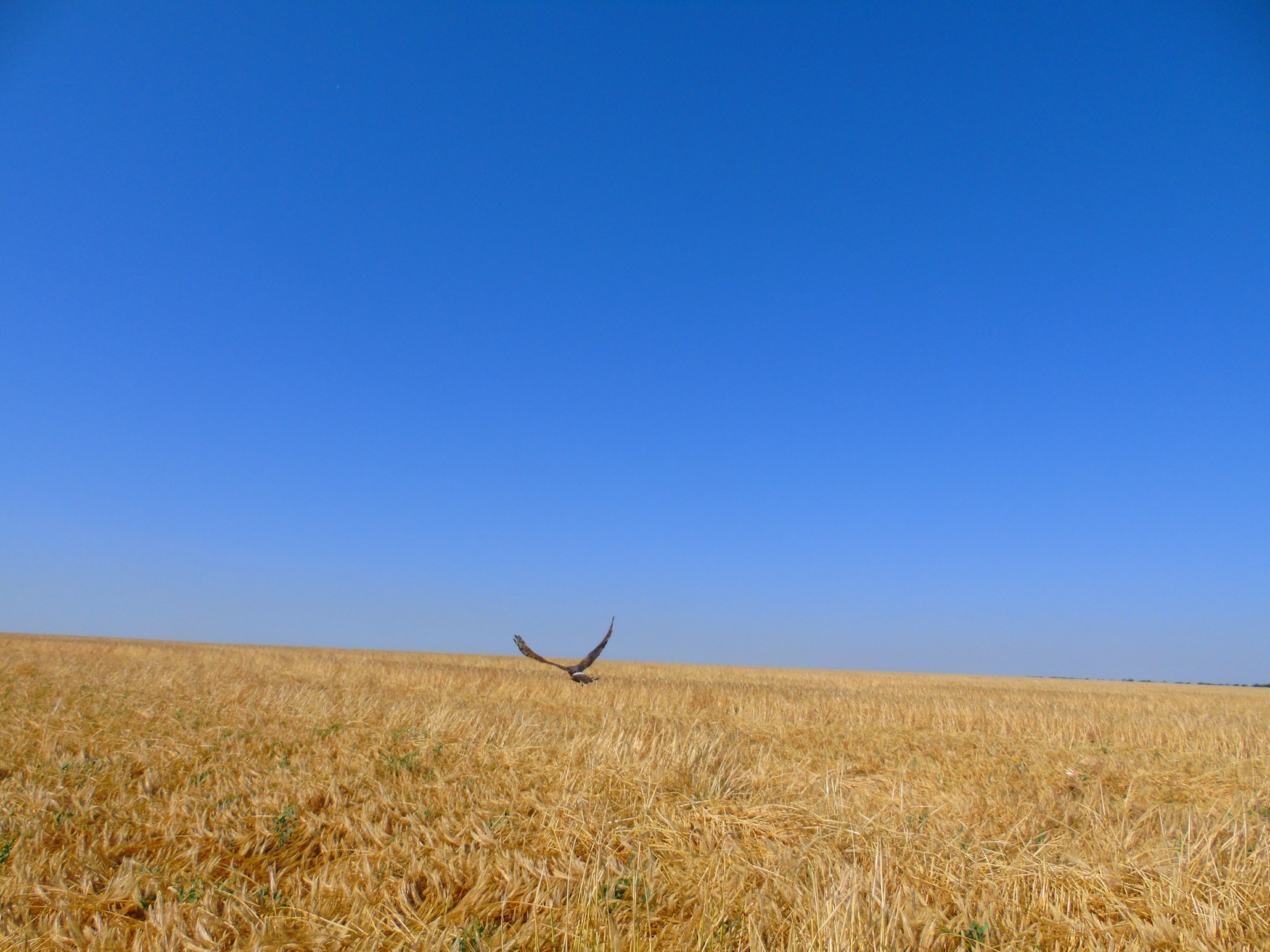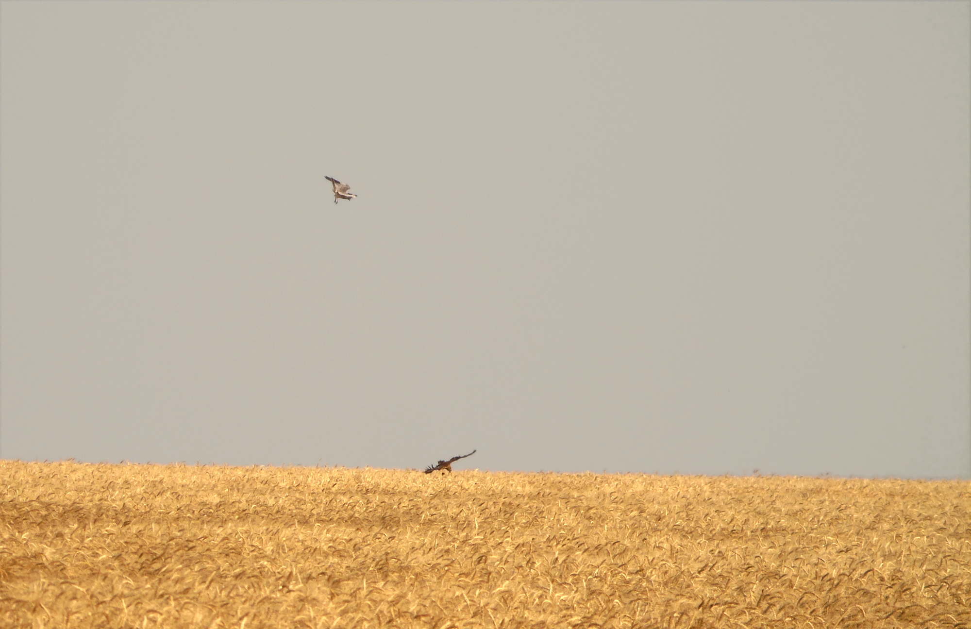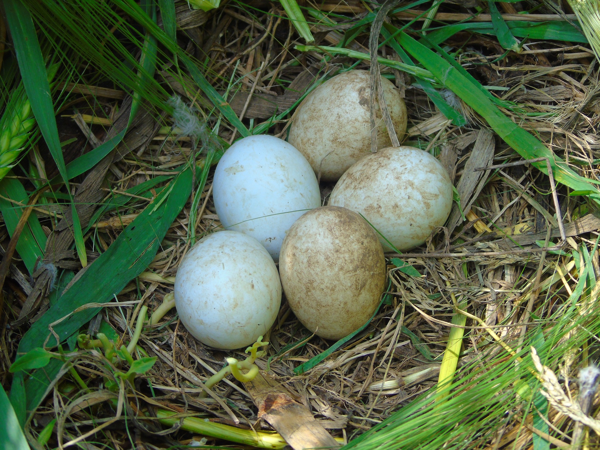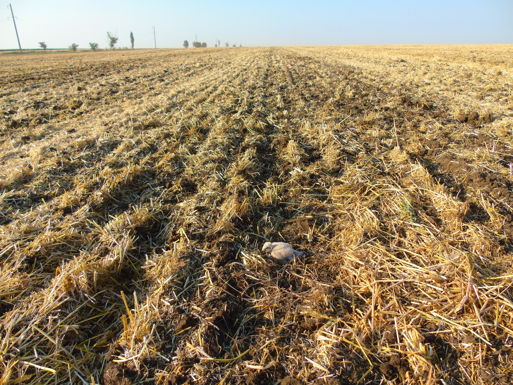 Вторая пара гнездилась примерно в 1 км от предыдущей, среди озимой пшеницы. В гнезде была очень поздняя кладка из 2-х яиц. Во время уборки урожая, 08.07.2020, вокруг гнезда также удалось оставить нескошенным участок пшеницы 10х15 м. В отличие от предыдущего поля здесь севооборот не предусматривал посадку сои и после уборки урожая поле осталось нетронутым. Но, к сожалению, это не способствовало сохранению гнезда, как и установленное нами заграждение из сетки, которое предусматривало защиту от непрошенных гостей и наземных хищников. Пара ещё довольно долго продолжала насиживание, но 25.07.2020, после сильного дождя и урагана, вся нескошенная пшеница у гнезда полностью полегла, что, вероятно, и стало причиной того, что птицы бросили кладку. Интересной особенностью гнездования данной пары было то, что незадолго до уборки урожая, 28.06.2020, примерно в 200 м от охраняемого гнезда, было найдено ещё одно – брошенное гнездо, в котором также было 2 яйца. Это косвенно подтверждает, что охраняемое гнездо было с повторной кладкой. Причина, по которой птицы бросили первое гнездо, так и осталась невыясненной.