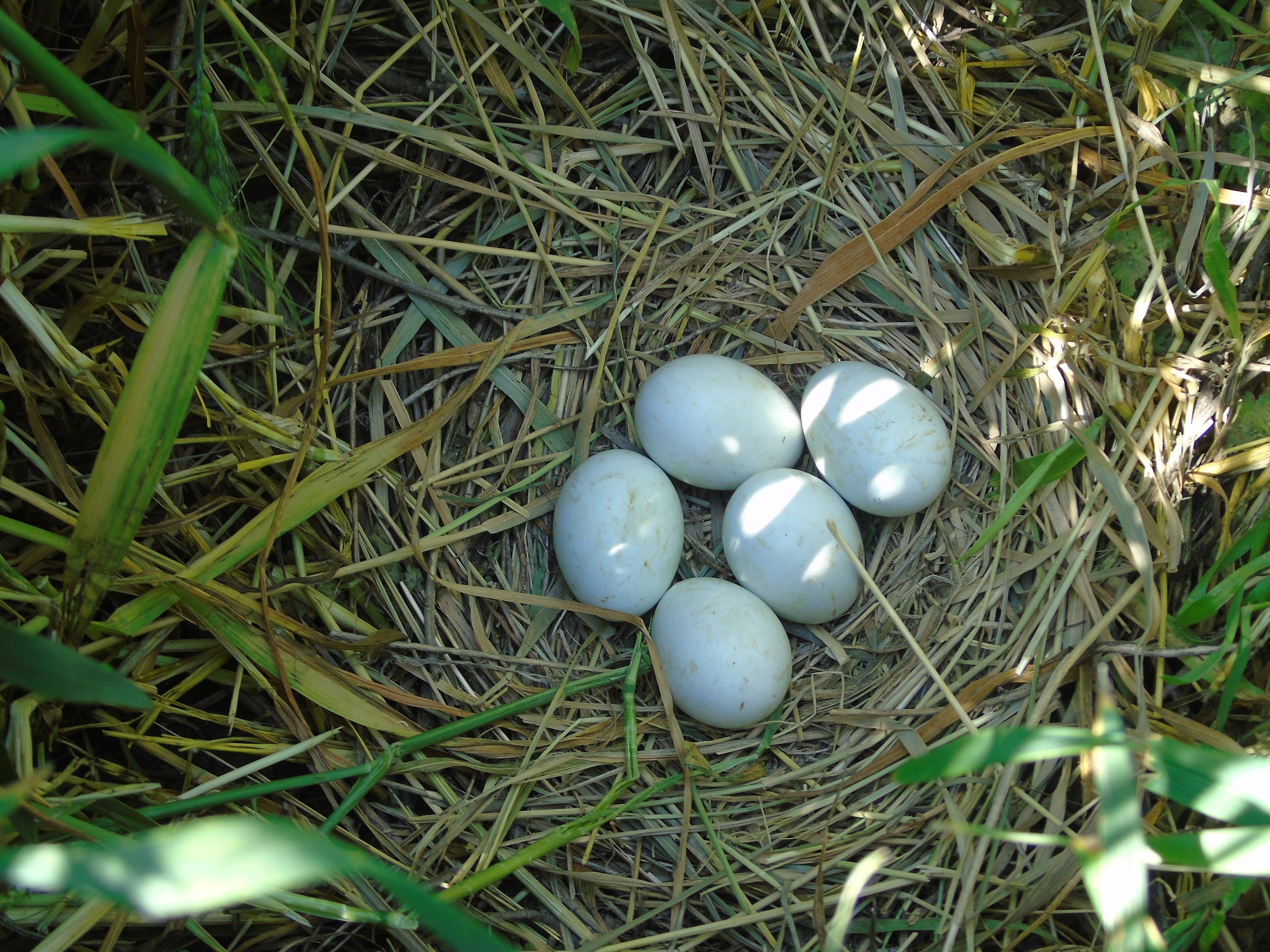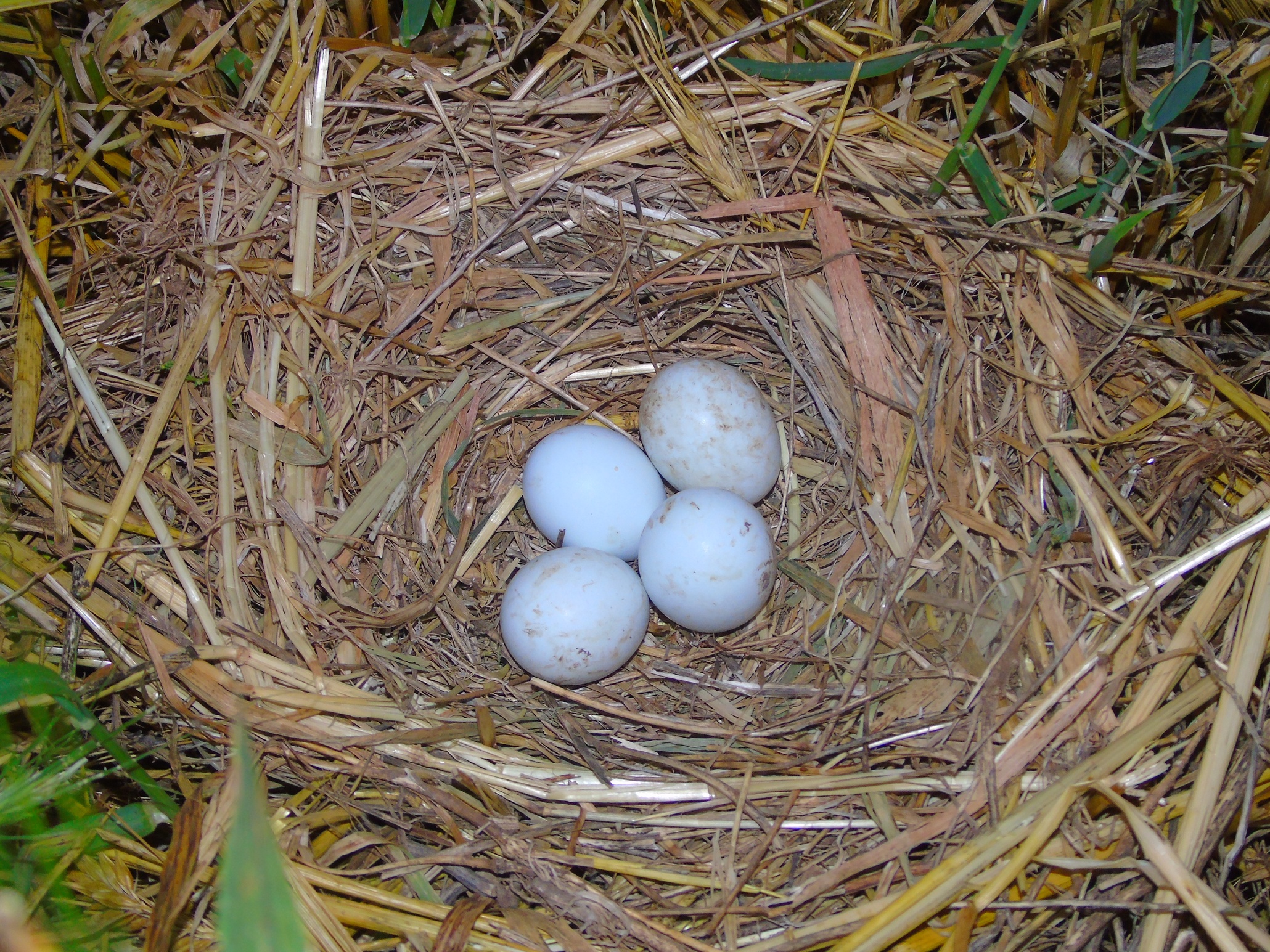 Хочу поділитися знахідками двох гнізд у Коростишівському р-ні.Житомирської обл. між с.Більківці та Студениця та на зх. від с.Козак.Так 1.06.96р. між с.Більківці та Студениця серед різнотравя сінокосу знайдене гніздо.В 20м.знаходився меліоративний канал та 250м. р.Свинолужка.В гнізді кладка з трьох яєць: 41.5 х 32 мм, 40 х 31 мм, 41 х 32 мм. Діаметр гнізда 30 см,лоток – 15 см, глибина лотка – 5.7 см.Через місяць у гнізді було закільцьовано чотири пташеняти.