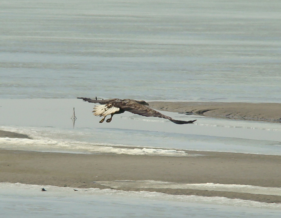 Скупчень орланів виявлено не було, птахи рівномірно розподілялись по всій території досліджень. Найбільшу чисельність спостерігали в долині Прип’яті – 13 особин. На р. Несвіч трималося 5 орланів, де була невеличка ополонка. Біля м. Чорнобиль на трупі загиблого оленя зустрінуто 7 птахів. Частина дорослих птахів трималась гніздових ділянок.