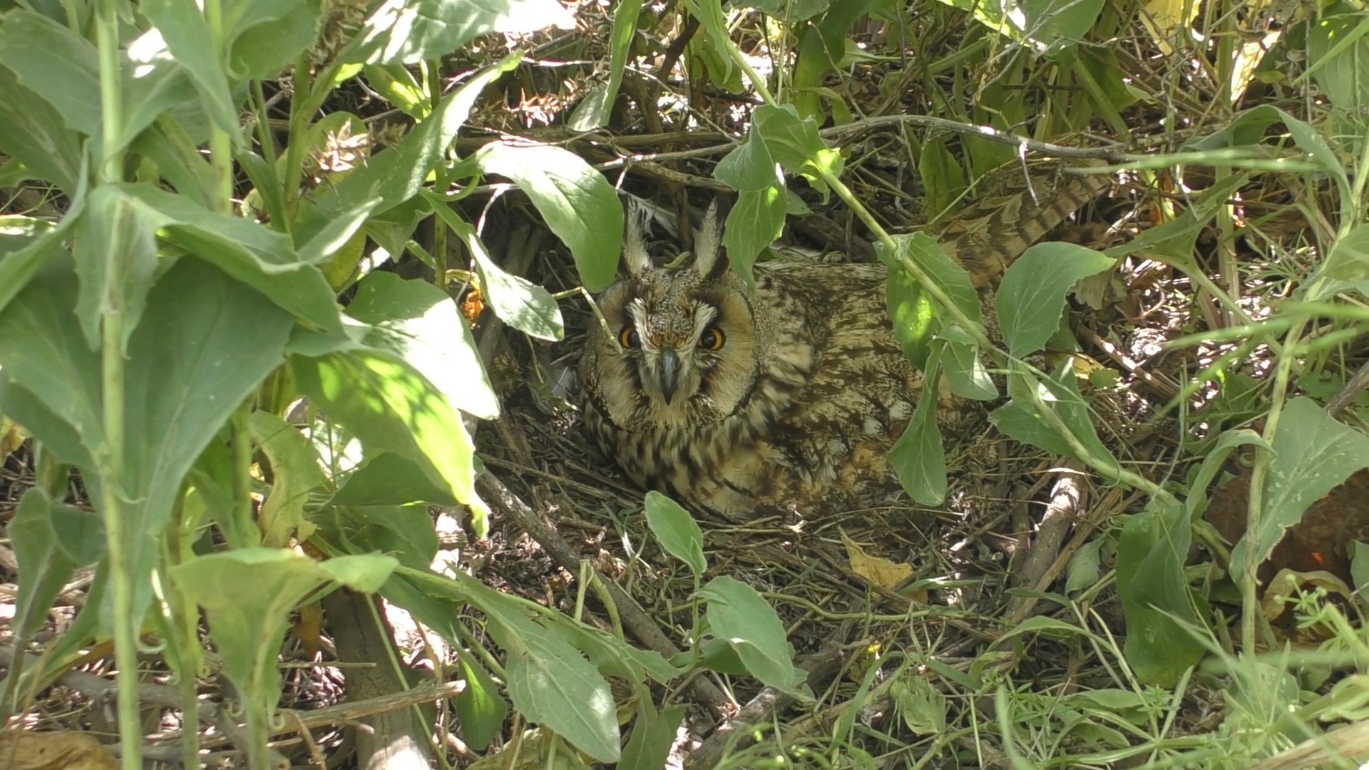 27.05.2020 року біля с. Раківка (Бериславський район) нами було виявлено гніздо вухатої сови, влаштоване на землі. Сови загніздились на дні балки, оточеної полями. У нижній частині балка мала нерозорану смугу степової рослинності шириною 50-100 м. Гніздо було влаштовано на дні невеликої канави глибиною близько 40-50 см, яка залишилася від старого каналу зрошення. Гніздо було розташовано серед густої трав’янистої рослинності висотою 40-50. Зокрема, біля нього зростали лопухи, які своїм листям повністю прикривали гніздо зверху та з боків. На момент виявлення самка насиджувала повну кладку, що нараховувала 7 яєць. Вони лежали на землі у невеликому заглибленні, утвореному від тіла самки серед невеликої кількості залишків сухої трав’янистої рослинності.