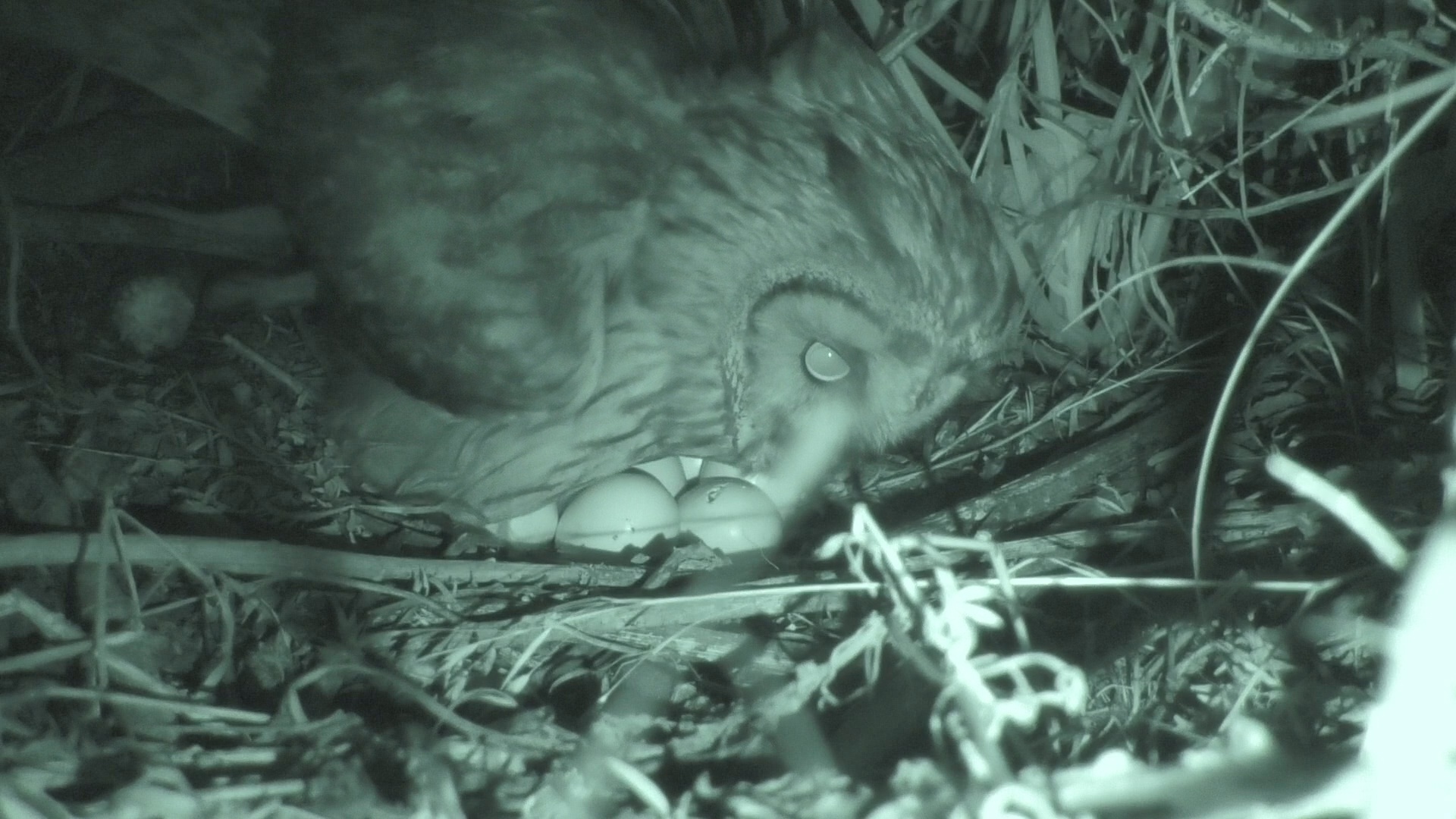 Результати досліджень показали, що протягом світлої частини доби самка ніколи не залишала гніздо. Вночі до моменту вилуплення пташенят самець щоночі приносив самиці по 3-4 мишоподібних гризуна. Самка по декілька разів за ніч залишала гніздо на проміжки від 5 до 18 хвилин.