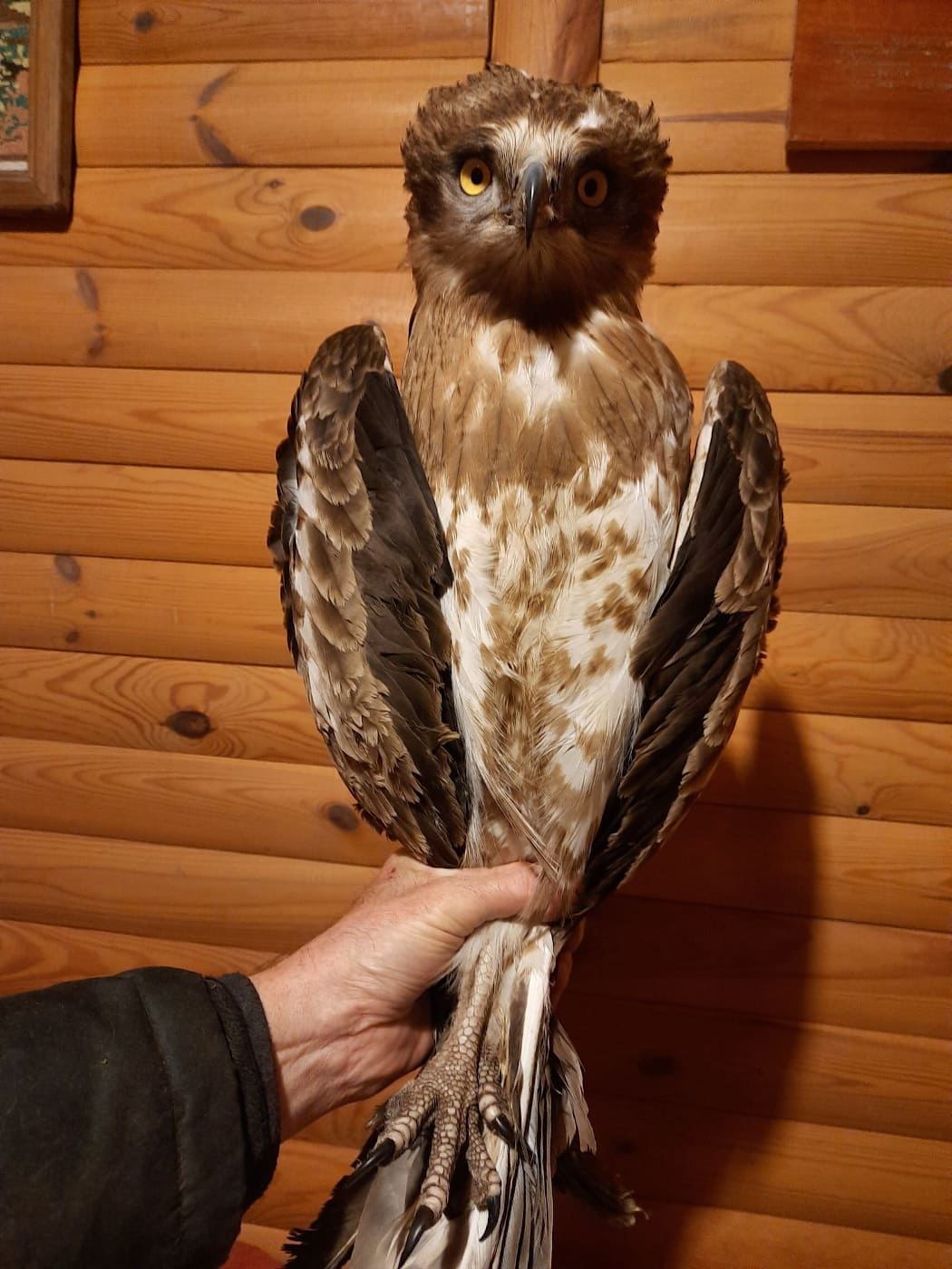 7 листопада 2021 року молодий змієїд у віці декількох місяців був підібраний неподалік с. Скрипки Васильківського району Київської області. Птах був зовсім знесилений, і його доправили до приватного реабілітаційного центру «Садиба Нюшанікове» Ірині та Валерію Снопко. Після огляду ветеринара змієїду було призначено курс лікування. Він залишався в центрі до травня 2022 року, коли, зважаючи на цілком задовільний стан птаха, було вирішено випустити його на волю. На щастя, у нашому розпорядженні був GPS-GSM передавач, який ми використали для подальшого відстеження переміщень змієїда в рамках міжнародного гранту Ecotone-Telemetry. У разі тривалого зниження активності птаха у нас була б змога знайти його та повернути до центру.