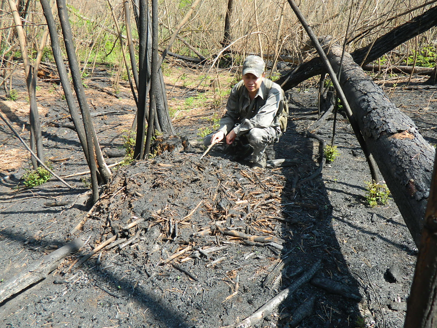 Всего было прослежено 25 случаев гнездования с известным результатом. Успешность гнездования была достаточно высокой – лишь четыре случая размножения были неуспешными, что составило 84%. Это несколько выше среднего многолетнего значения. В одном случае гнездование было неуспешным из-за весеннего пожара. Эта пара орланов в Черкасском районе уже несколько лет гнездилась на усохшей сосне среди сосновых посадок. Наверное, если бы у орланов были альтернативные места гнездования, они давно бы уже сменили ненадежное дерево. Прошедший в апреле 2013 года пожар в сосняке привел к тому, что дерево с заселенным гнездом упало и само гнездо из сухих сучьев практически полностью сгорело (см. фото).