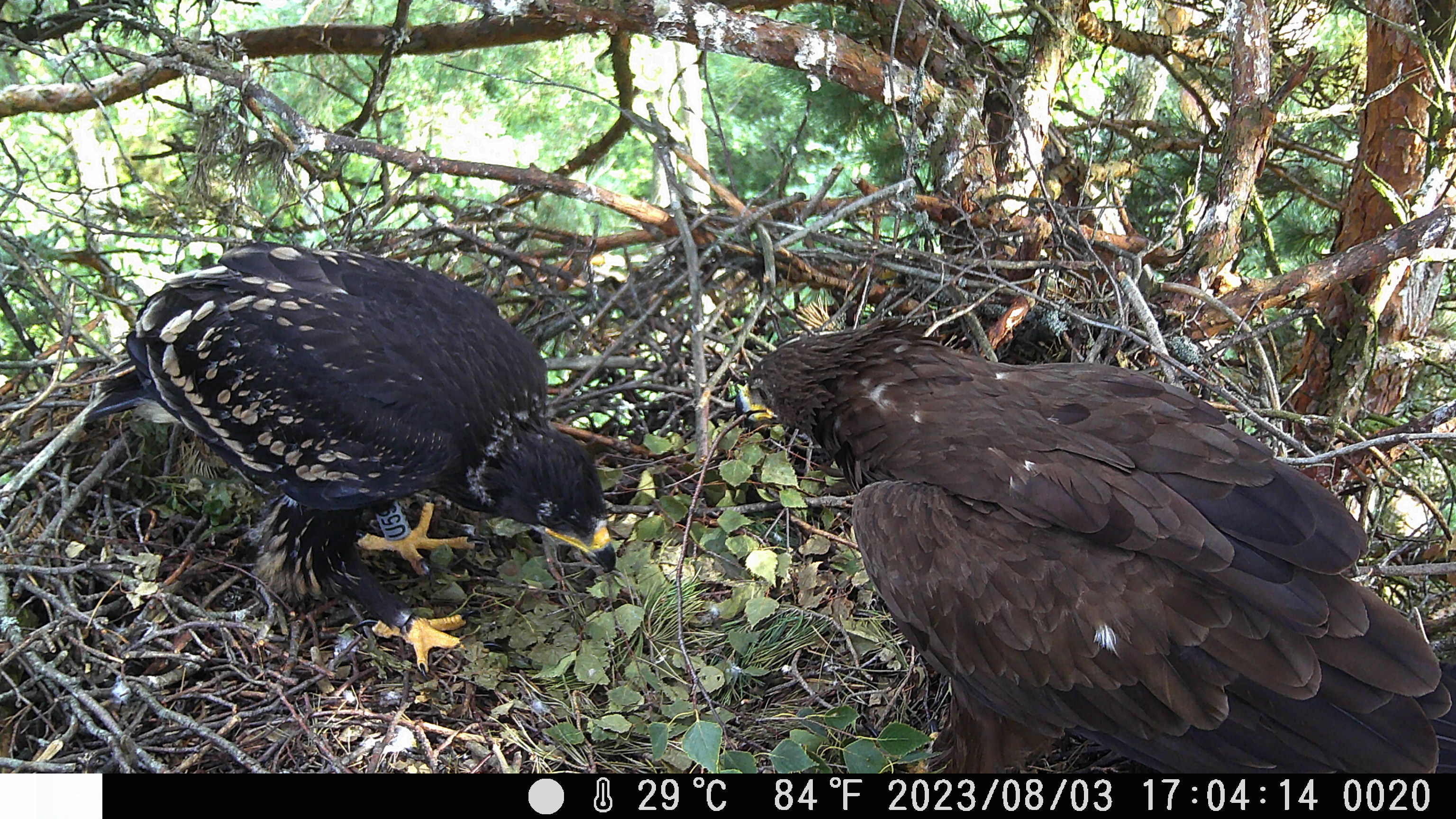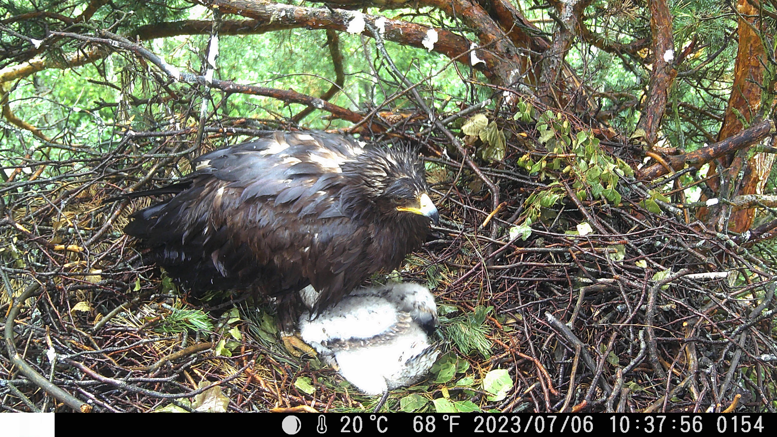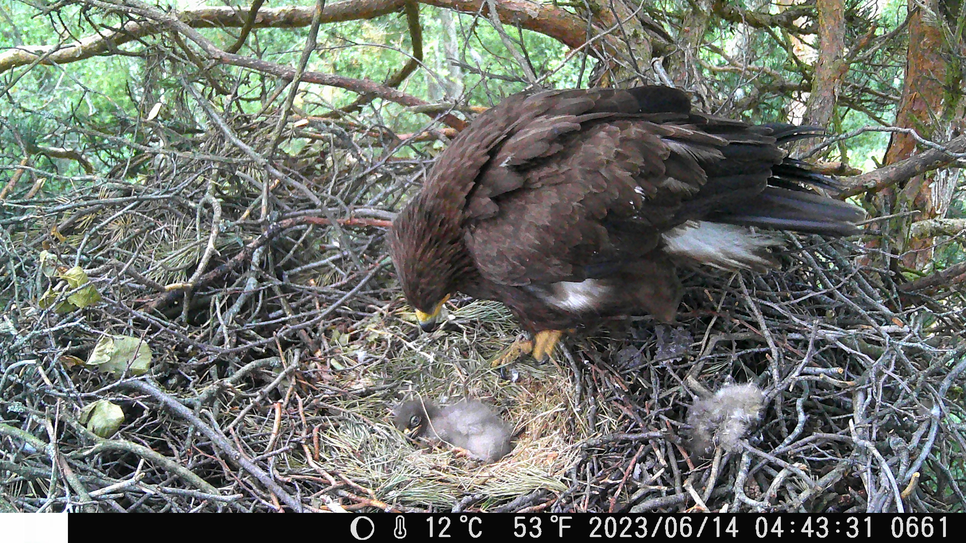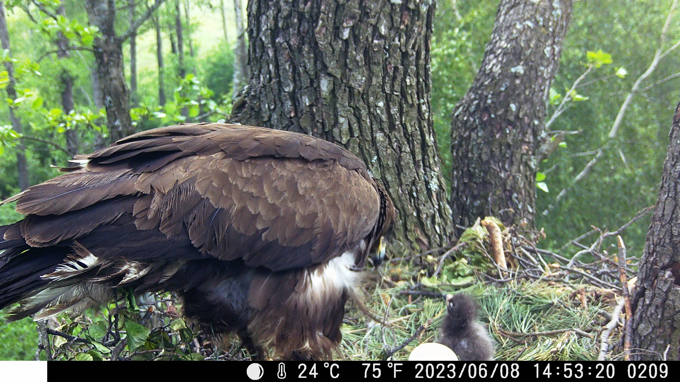 У підсумку з 7 пар великих підорликів, які зайняли свої гнізда навесні, 5 пар (71,4%) приймали участь у розмноженні. Середня успішність гніздування склала 50%, продуктивність 1,0 пташенят на пару, що приймала участь у розмножені, та 0,7 пташеня на всі пари. Такі показники є досить високими для даного виду, так як нормальним для підтримки популяції вважається показник у 30-50%. Відомо, що у підорликів великих практично завжди виживає одне пташеня. Існує безліч причин загибелі другого пташеняти – це каїнізм з боку іншого пташеняти, дефіцит корму, хижацтво, хвороби тощо. Завдяки фотопасткам нам вдалось з’ясувати причини загибелі пташенят, встановити успішність та продуктивність гніздування, отримати багато іншої інформації про гніздову екологію, результати яких ми представимо у наступних дописах.
