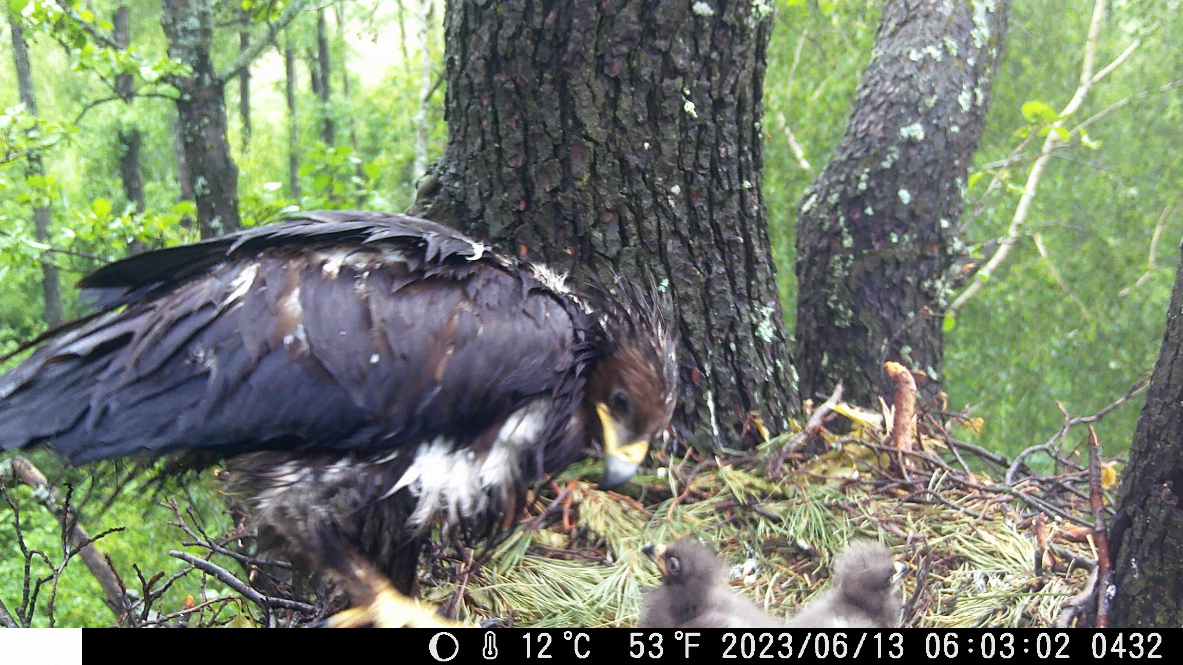 З поміж переліченого нами були розпочаті роботи з вивчення успішності гніздування підорлика великого за допомогою фотопасток, про які ми хочемо з вами поділитись. Такі роботи ми розпочали у 2020 році, коли почали встановлювати фотопастки на гнізда підорликів під час мічення пташенят, що припадало на середину липня. Початкова мета встановлення фотопасток – відстеження успішності покидання гнізд молодими птахами. Встановлення камер в кінці гніздового періоду не давало розуміння про основні аспекти гніздової екології, а саме: фенологію гніздування, розмір кладки та її виживання. Завдяки технічній підтримці проєкту «Полісся – дика природа без кордонів» у 2021 році вдалось встановити 10 фотопасток на гнізда підорликів, однак через технічні причини, тільки декілька пасток було встановлено до початку гніздового періоду, що не дало нам повної картини. Повномасштабна війна у 2022 році також не дала можливості це зробити. Тому у підсумку за 2020-2022 роки ми маємо задокументовані дані з 10 гнізд підорликів, що стосуються кінця гніздового життя (липень – серпень) та подальшого використання гнізд.