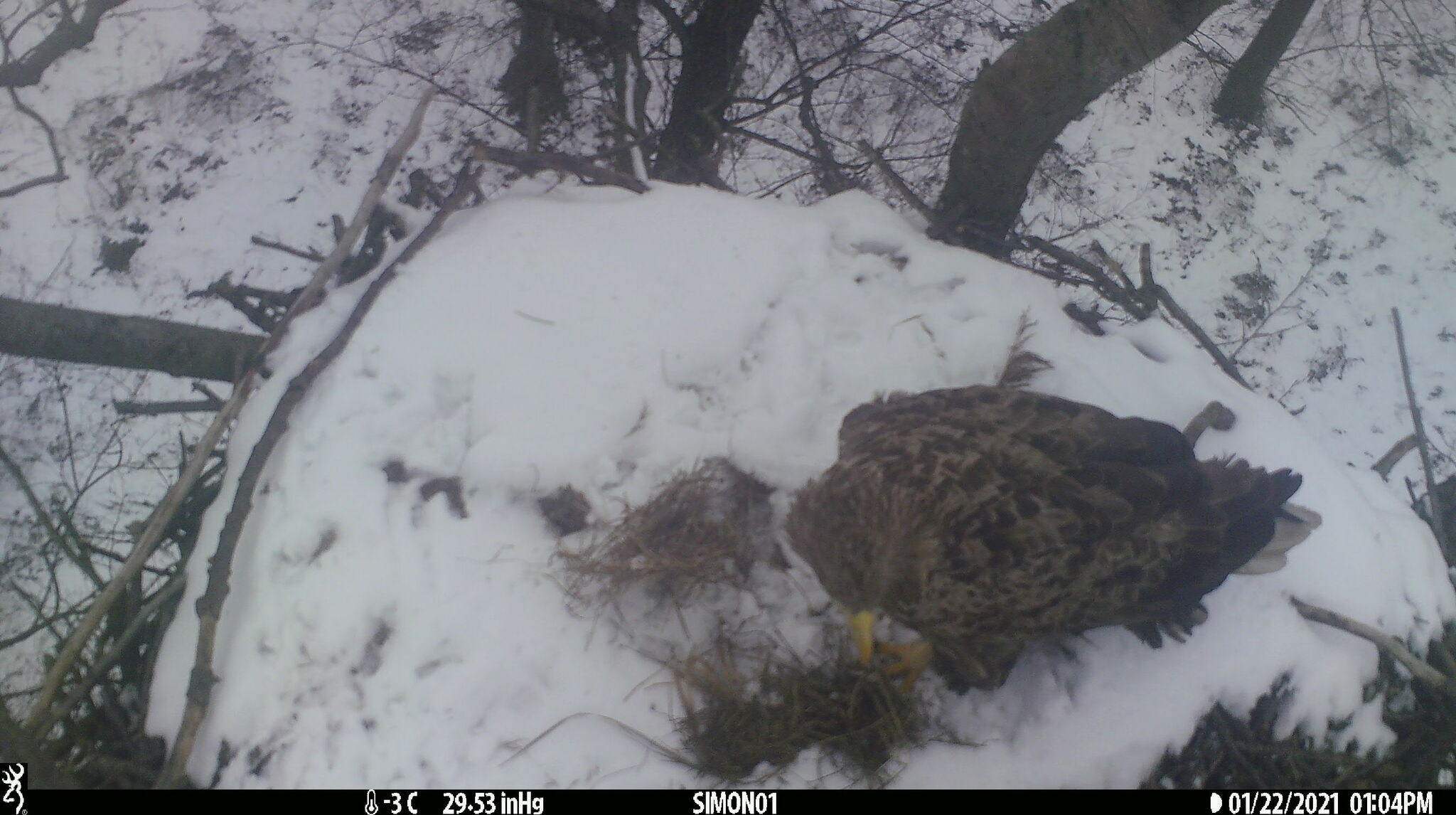 Використання фотопасток на гніздах хижих птахів дає можливість отримати доволі важливий і значний за обсягом матеріал, що раніше, був недоступним для науковців. Про це свідчать наші попередні дописи. Найбільш поширений методичний прийом у роботі з фотопастками передбачає їх встановлення на гнізді птаха навесні, до початку їх гніздування; перевірка влітку коли пташеня вже достатньо доросле і присутність науковця несе найменшу загрозу для нього; а також збір інформації в кінці сезону, коли птахи відлітають у вирій або залишають гніздову ділянку. Нами було вирішено залишити фотопастки на зимовий період з метою виявлення активності різних тварин на гніздах хижих птахів. Також у дописі використані дані, що були отримані у гніздовий сезон, коли власники цих гнізд у них не розмножувалися.
