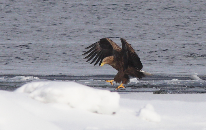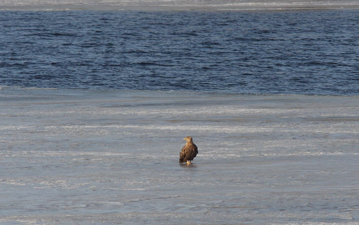 У районі Кременчуцької ГЕС нами було зустрінуто 34 орланів-білохвостів. Вони трималися переважно поодинці, рідше – невеликими групами (до 6 ос.) – сиділи на льоду та на деревах уздовж русла Дніпра. Серед них переважали молоді птахи – 26 ос. Це найбільша кількість орланів, що була зустрінута нами в цьому місці за семирічний період досліджень. Таку кількість птахів ми пояснюємо тим, що облік припав на початок похолодання, в ході якого орлани скупчилися біля ГЕС. У подальшому більшість із них, імовірно, відкочувала у більш південні регіони.