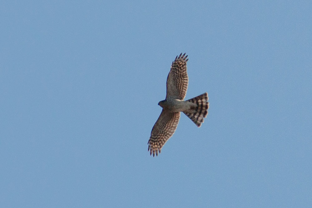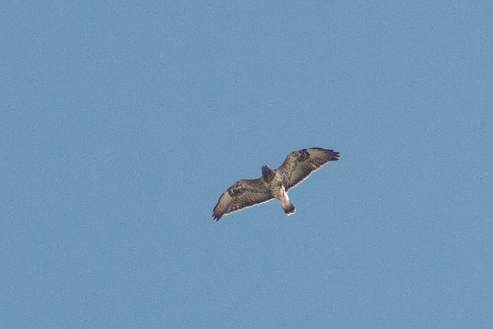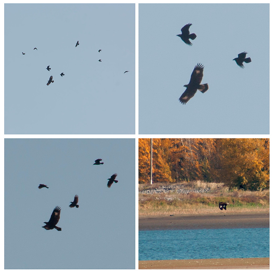19 жовтня 2014 року ми стали свідками нового випадку масової міграції соколоподібних (в обліках брали участь також І. Пуха та К. Лавріненко). Декілька днів перед спостереженнями погода була переважно хмарною, часом ішов дощ; напередодні різко похолодало (вночі вперше протягом осені був мороз до -2ºС). Ранок 19 жовтня видався безхмарним, дув північний вітер, який ближче до обіду вщух. Проводячи обліки водно-болотних птахів на акваторії Кременчуцького водосховища, ми вже о 8.40 год. побачили першого пролітного канюка, який перелітав над водосховищем. Зауважимо, що така поведінка є нетиповою – зазвичай птахи прагнуть облетіли центральну, найширшу частину водосховища. З 9.00 помітивши виражений проліт хижаків вздовж лівого берега водосховища на ПнЗ, ми переключилися на спостереження за міграцією. Більшість пролітних птахів склали канюки. Зранку, за наявності майже зустрічного вітру та відсутності термік вони летіли на невеликій висоті. Інтенсивність прольоту була настільки великою, що неможливо було виділити окремі зграї – канюки летіли на певній відстані один від одного безперервним потоком. Протягом години (9.30-10.30) у такий спосіб пролетіло майже 900 канюків. При такій великій кількості птахів ми мали гарну нагоду побачити різноманітні варіації забарвлення цих хижаків. Після 10 год. почали утворюватися терміки і птахи стали затримуватися в них, утворюючі великі зграї, які за чисельністю нагадували граків. Міграція при цьому стала носити характер хвиль, під час яких пролітали у ширяючому польоті зграї, що виникли у таких терміках. Міграція вщухла досить швидко – до 12 год., пізніше пролетіли лише декілька невеликих груп птахів. Усього нами було відмічено близько 2050 канюків, 11 малих яструбів, 8 зимняків та 1 польовий лунь. Безумовно, були обліковані не всі пролітні птахи. Приємною несподіванкою стала зустріч молодого беркута. У цей момент ми перебували на риборозплідних ставках, де періодично у повітрі можна було бачити ширяючих орланів-білохвостів. Проте нашу увагу привернув один «орлан», якого активно атакували десяток круків. Подивившись у біноклі, ми побачили беркута. Невдовзі від домагань круків він вимушений був сісти на піщану обмілину на ставках поблизу з орланами, згодом злетів і ще довго кружляв над ставками. Це вже друга зустріч беркута цього року (попередній раз ми його відмітили 4.10).