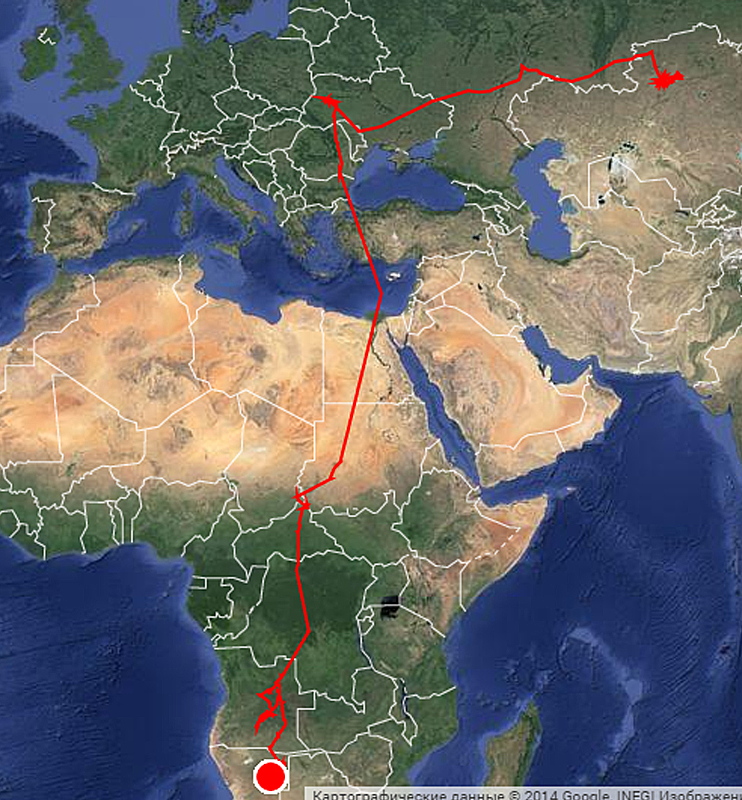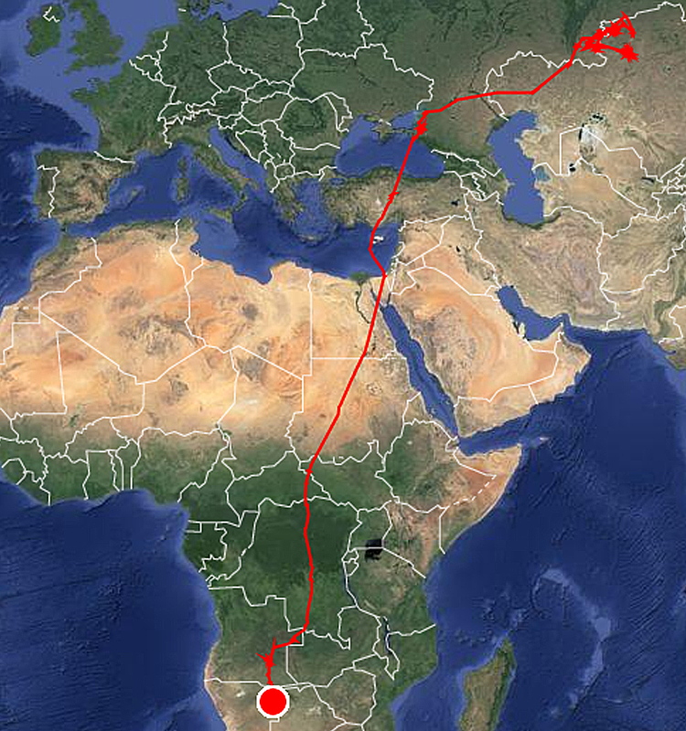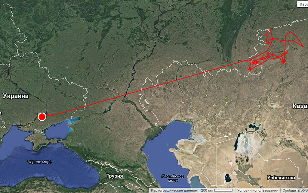 После окончания гнездового периода кобчики не стали мигрировать на зимовку на юг, в Азию, а полетели в Африку. Причем два из них были на территории Украины. Детали перемещения птиц можно найти по ссылке. Ниже приводим краткий анализ их перемещений.