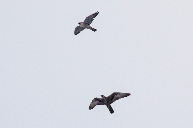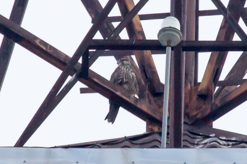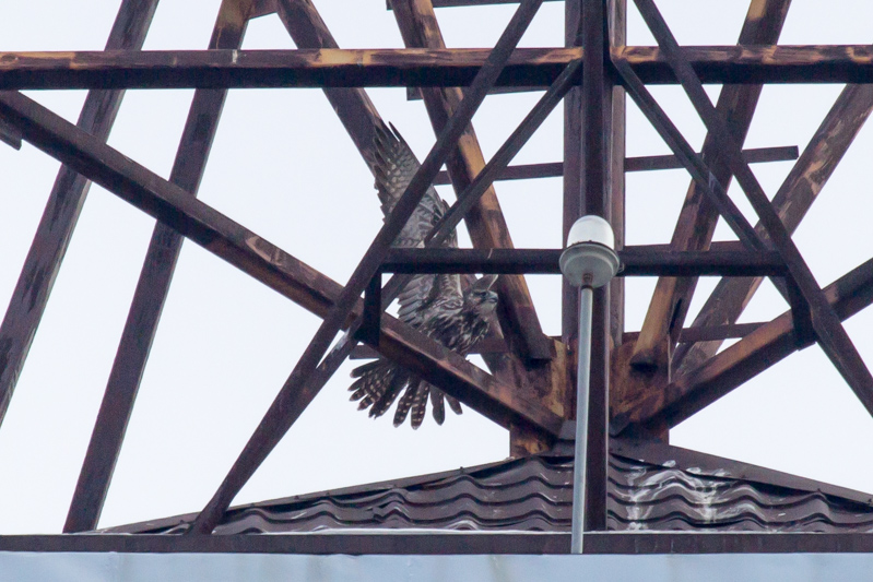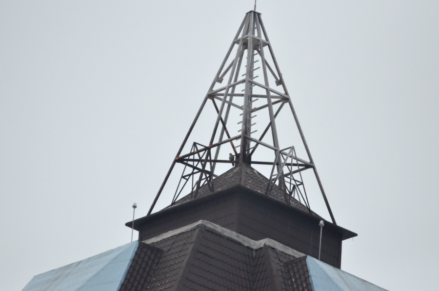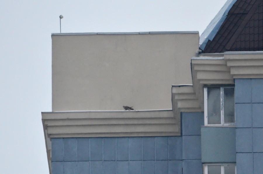 И вот произошла очередная встреча с балобаном, который остался зимовать в городе. Впервые сокол был отмечен 16.11.2014 г. Самка балобана конфликтовала с серыми воронами, садилась на крышу многоэтажки. В начале первой декады декабря наблюдали, как эта же птица здесь конфликтовала уже со взрослой самкой сапсана. Ежедневно птицы держались данного здания и одновременно отдыхали на нем, но по разные стороны. Случай зимовки балобана в городе на севере Украины является довольно интересным, тем более, что на одном здании держалось два вида крупного сокола, которые внесены в список Красной книги Украины.