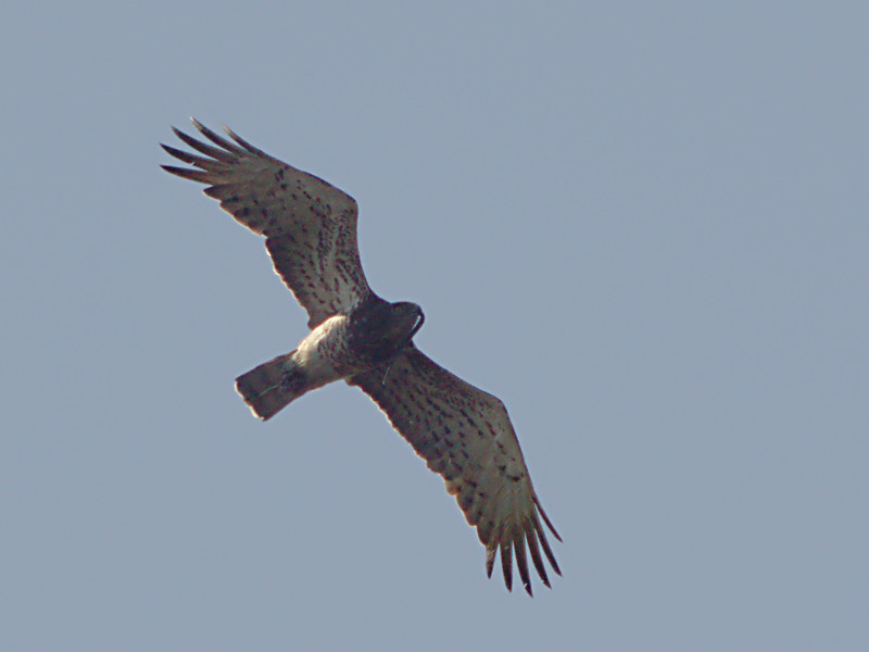 Apart from the Short-toed Eagle we also met other birds of prey. It was counted: Honey Buzzard – 9 особей, из них 7 территориальных птиц; Black Kite – 6 (4); Montagu’s Harrier – 4 (3); Marsh Harrier – 7 (2); Goshawk – 1; Sparrowhawk – 3; Common Buzzard – 20 (10); Short-toed Eagle – 22 (14); Booted Eagle – 1; Spotted Eagle – 12 (11); White-tailed Eagle – 8 adults and 3 juveniles; Hobby Falcon – 10 (7); Common Kestrel – 5 (1).