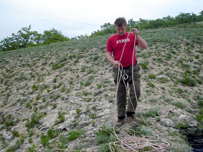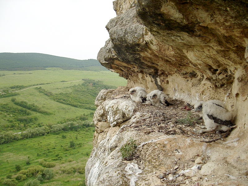 During 20-28 May 2008 the joint expedition executed studies on the Crimean Peninsula. The participants of the expedition were V. Vetrov, S. Domashevsky, Y. Milobog and V. Strigunov – researchers of the Ukrainian Centre for Research of Birds of Prey (UCRBP) in cooperation with Dimitar Ragyov (Bulgaria) and Andrew Dixon (United Kingdom) – researches of the Southeast European Saker Network (SESN). The aim of the expedition was to collect feathers of Saker’s chicks for further DNA analysis. For investigation there were chosen rocky precipices with already known nesting sites of the Saker or rocks with birds recorded during their breeding season. The study area included foothills and a part of the steppe zone. In addition to collection of samples participants of the expedition also collected material on the Saker’s diet (pellets, feathers of their preys) in nests and under them, and on roost sites of adult birds. All the collected materials will be comprehensively processed in laboratory.