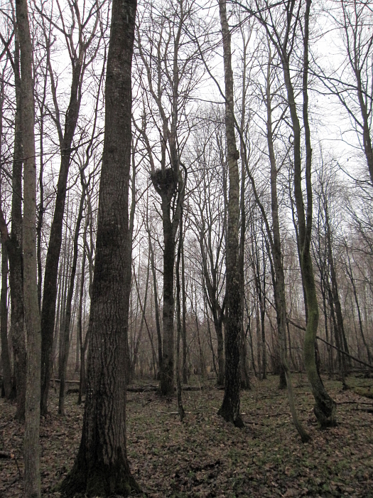 We managed to indentify some prey remains in situ: Tawny Owl, Woodcock, Mallard, Eurasian headgehog and the vole sp. Still, it is the second reliable find of the Eagle Owl on breeding in the alienated zone. The first case of finding chick was recorded in 2002 in the CAPS area (Gashchak et al., 2006). Also pleasant was an encounter of the Great Grey Owl settled in a raptor’s nest. On 21 May, the female was warming small chicks which heads were visible from land. This owl species successfully distributes in the territory of Right-Bank Polissia and first breeding cases in Kyiv Region were already known 10 years ago (Domashevsky, 2004, 2009; Mishchenko, 2004). In Tolstolesivske Foresry we found a territory of the Short-toed Eagle, not known before. The pair of Lesser Spotted Eagles, discovered in April, left their nest vacant this season and probably built a new one.